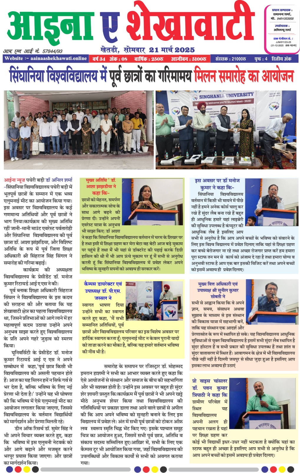 A grand alumni meet was organized at Singhania University March 21, 2025 Anju Gupta 0 सिंघानिया विश्वविद्यालय में पूर्व छात्रों का गरिमामय मिलन समारोह का आयोजन
