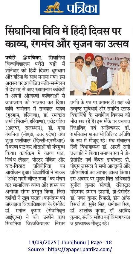 Celebrating the Spirit of Hindi Diwas at Singhania University with Poetry, Stage & Art