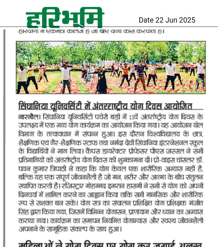 सिंघानिया विश्वविद्यालय में अंतर्राष्ट्रीय योग दिवस का आयोजन