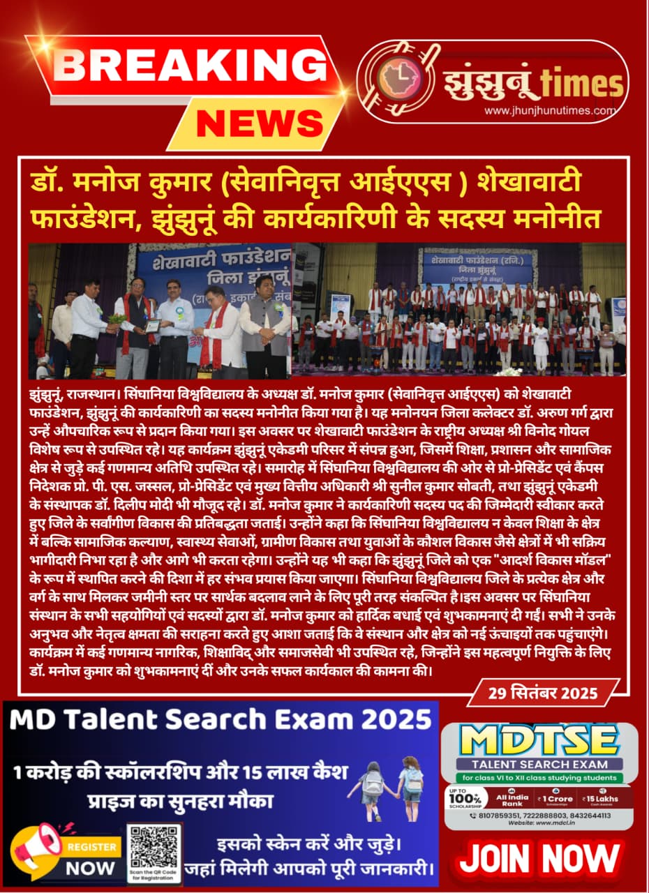 डॉ. मनोज कुमार, आईएएस (सेवानिवृत्त) ने शेखावाटी फाउंडेशन, झुंझुनूं की कार्यकारिणी समिति में शामिल हुए
