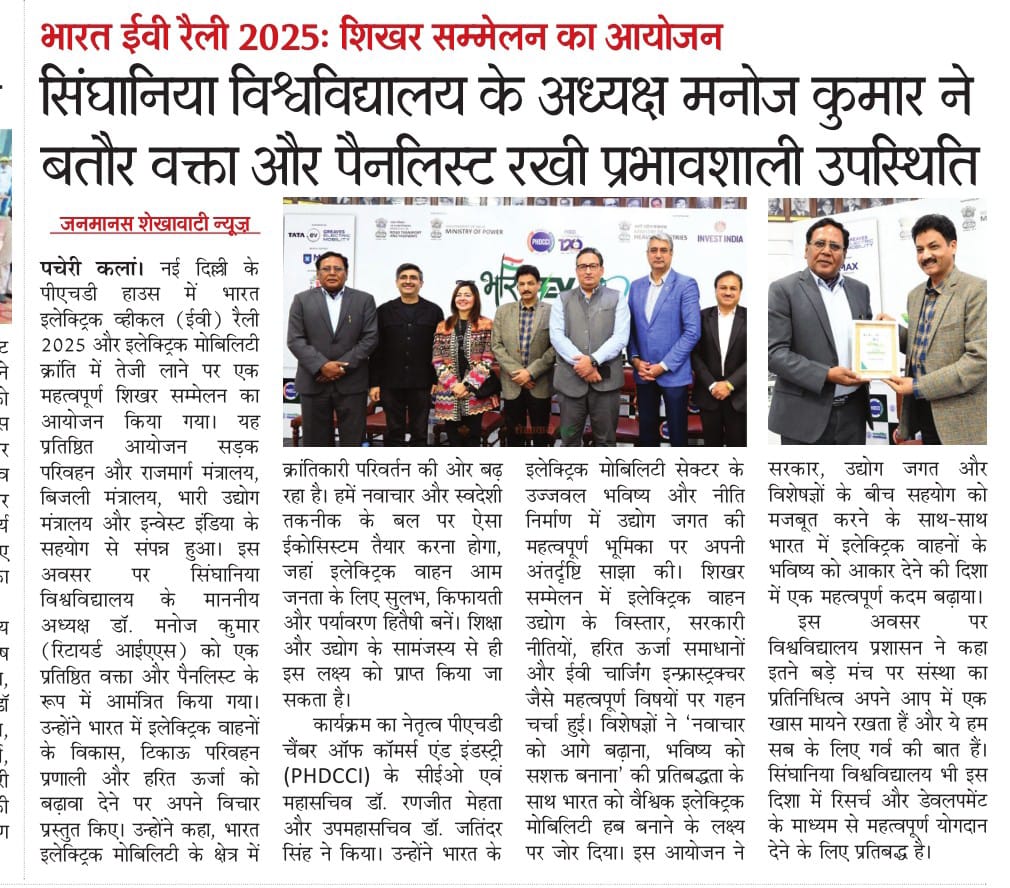 सिंघानिया विश्वविद्यालय के अध्यक्ष मनोज कुमार ने – बतौर वक्ता और पैनलिस्ट रखी प्रभावशाली उपस्थिति