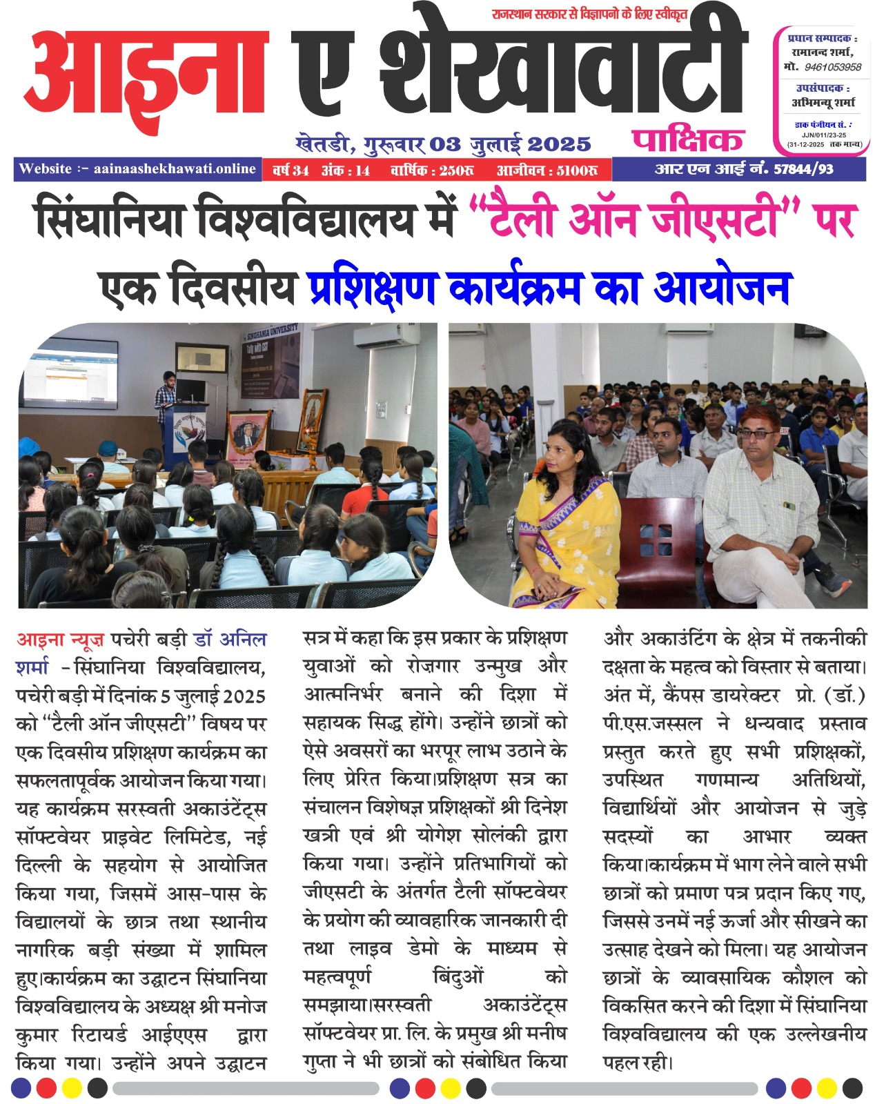 सिंघानिया विश्वविद्यालय में आयोजित ‘टैली विद जीएसटी’ प्रशिक्षण सत्र ने सीखने को सशक्त बनाया