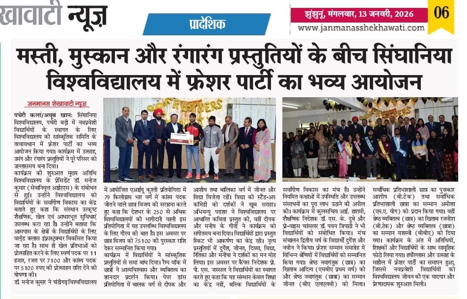 Fun, smiles and lovely moments: Singhania University celebrates freshers’ party January 13, 2026 Anju Gupta 0