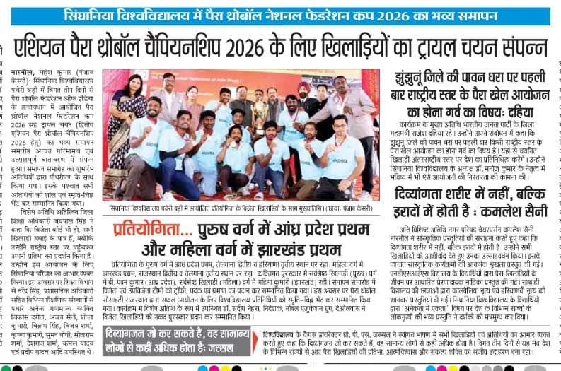 • Previous Grand Conclusion of Para Throwball National Federation Cup 2026 at Singhania University- Trials conducted for Asian Para Throwball Championship 2026 Selection