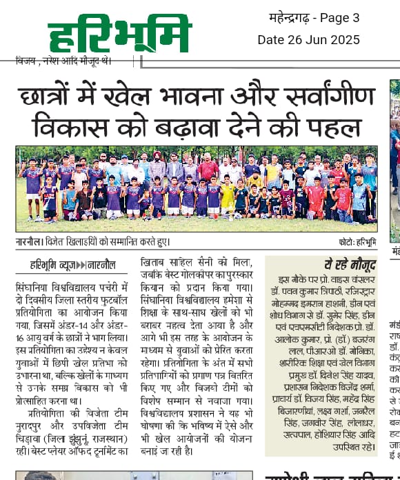 सिंघानिया विश्वविद्यालय में अंडर-14 एवं अंडर-16 के लिए भव्य फुटबॉल टूर्नामेंट आयोजित