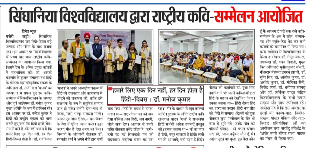Hindi Diwas celebrated with National Poets’ Conference at Singhania University