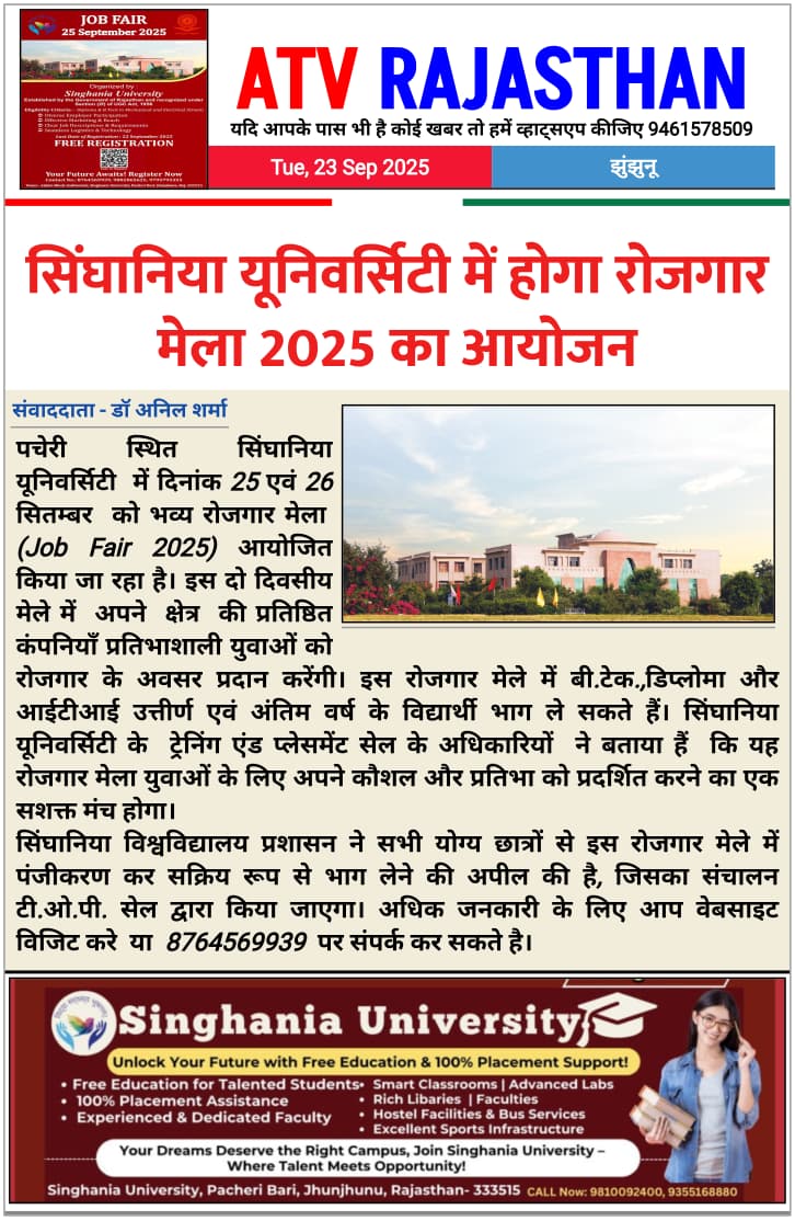 सिंघानिया विश्वविद्यालय जॉब फेयर 2025 में सैकड़ों छात्रों ने 15+ कंपनियों के साथ संपर्क किया