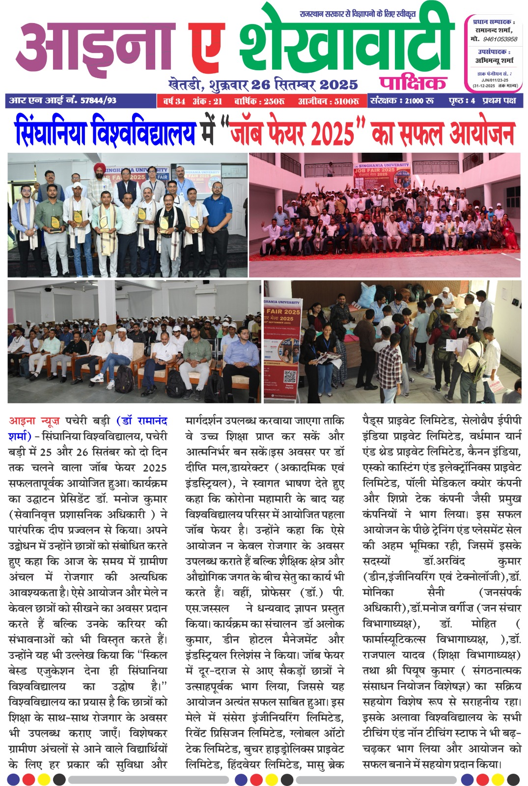 सिंघानिया विश्वविद्यालय जॉब फेयर 2025 बना सैकड़ों छात्रों के करियर का मार्गदर्शक