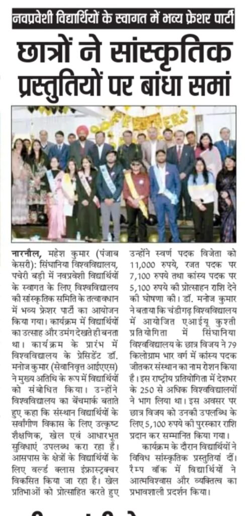 Joyful beginnings: Singhania University’s grand freshers’ party welcomes the new batch January 13, 2026 Anju Gupta 0