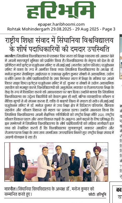 सिंघानिया विश्वविद्यालय के नेतृत्व ने राष्ट्रीय शिक्षा संवाद में सक्रिय रूप से भाग लियासिंघानिया विश्वविद्यालय के नेतृत्व ने राष्ट्रीय शिक्षा संवाद में सक्रिय रूप से भाग लिया