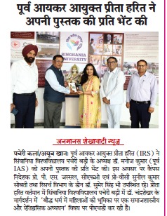 • Next Former Principal Commissioner of Income Tax, Ms. Preeta Harit (IRS), gifted her books “Bheem Uvaach” and “Sifar Se Shikhar Tak (Udaan)” to Dr. Manoj Kumar (IAS Retd.), President, Singhania University