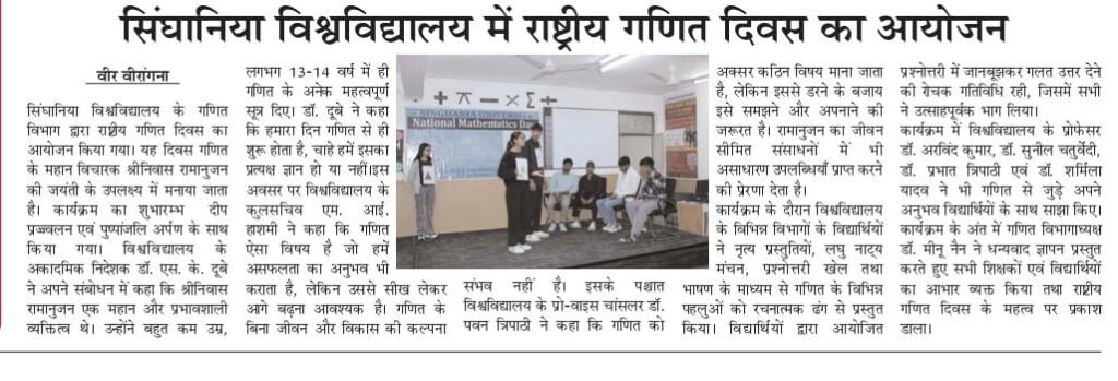 National Mathematics Day celebrated to honour the Legacy of Srinivasa Ramanujan December 23, 2025 Anju Gupta 0