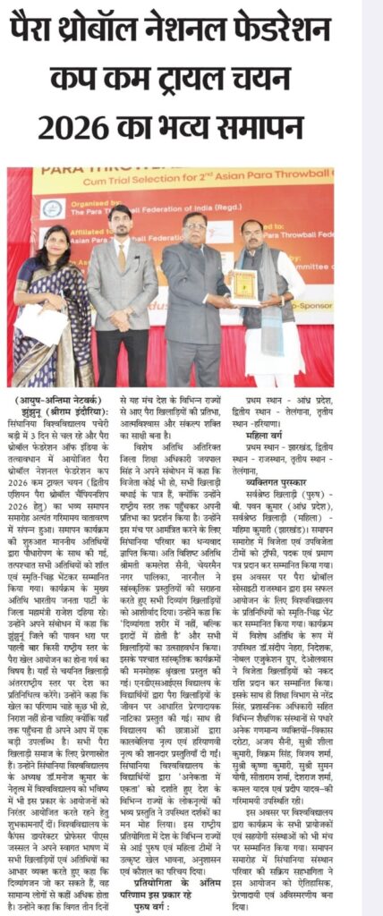 • Next Para Throwball National Federation Cup cum Trial Selection 2026 concludes at Singhania University