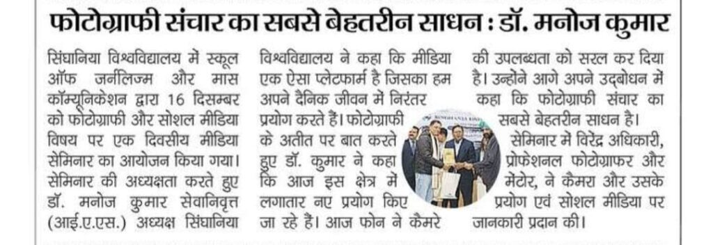 Photography Is the Most Powerful Medium of Communication: Dr. Manoj Kumar December 22, 2025 Anju Gupta 0