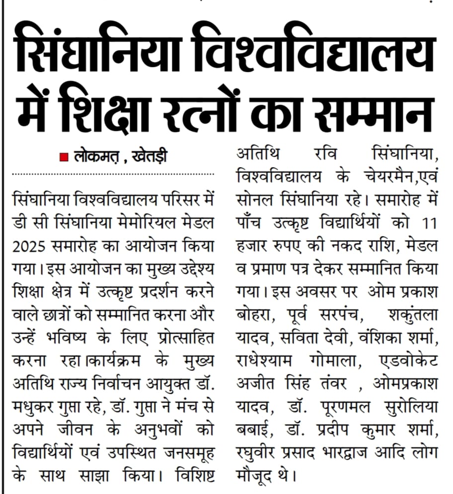 शैक्षणिक रत्नों को पहचानते हुए ‘डी.सी. सिंघानिया मेमोरियल मेडल’ समारोह विश्वविद्यालय के लिए एक ऐतिहासिक उपलब्धि रहा