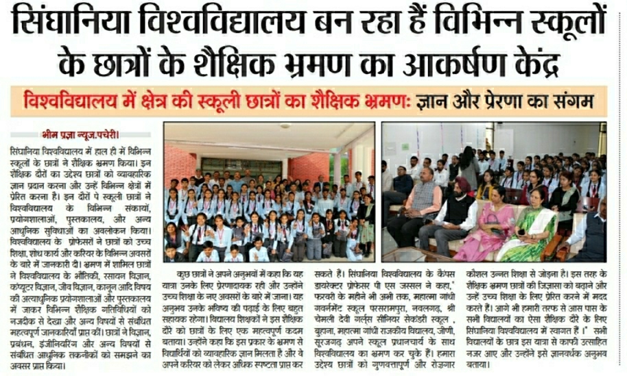 सिंघानिया विश्वविद्यालय बन रहा हैं विभिन्न स्कूलों के छात्रों के शैक्षिक भ्रमण का आकर्षण केंद्र