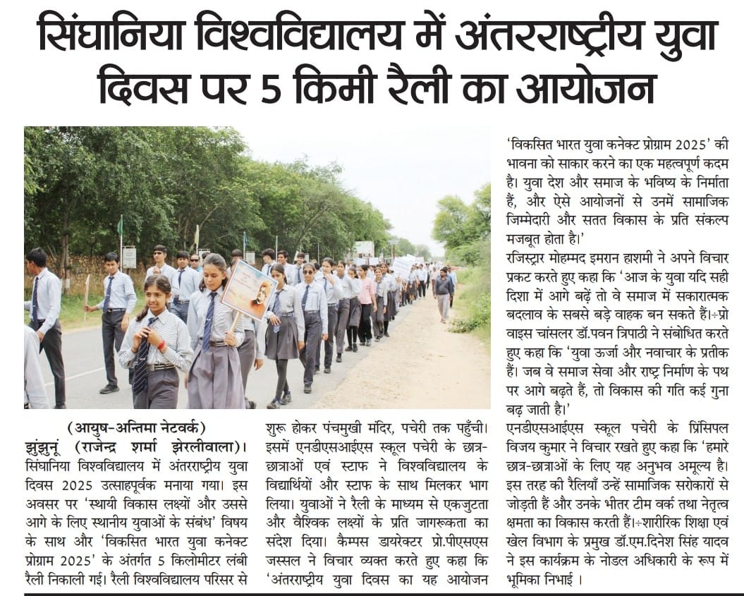 सिंघानिया विश्वविद्यालय ने 5 किमी रैली का आयोजन कर अंतरराष्ट्रीय युवा दिवस मनाया