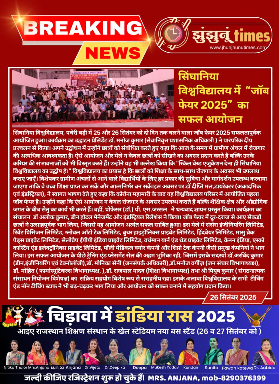 सिंघानिया विश्वविद्यालय ने जॉब फेयर 2025 का आयोजन किया, सैकड़ों छात्रों के करियर अवसरों को मजबूत किया