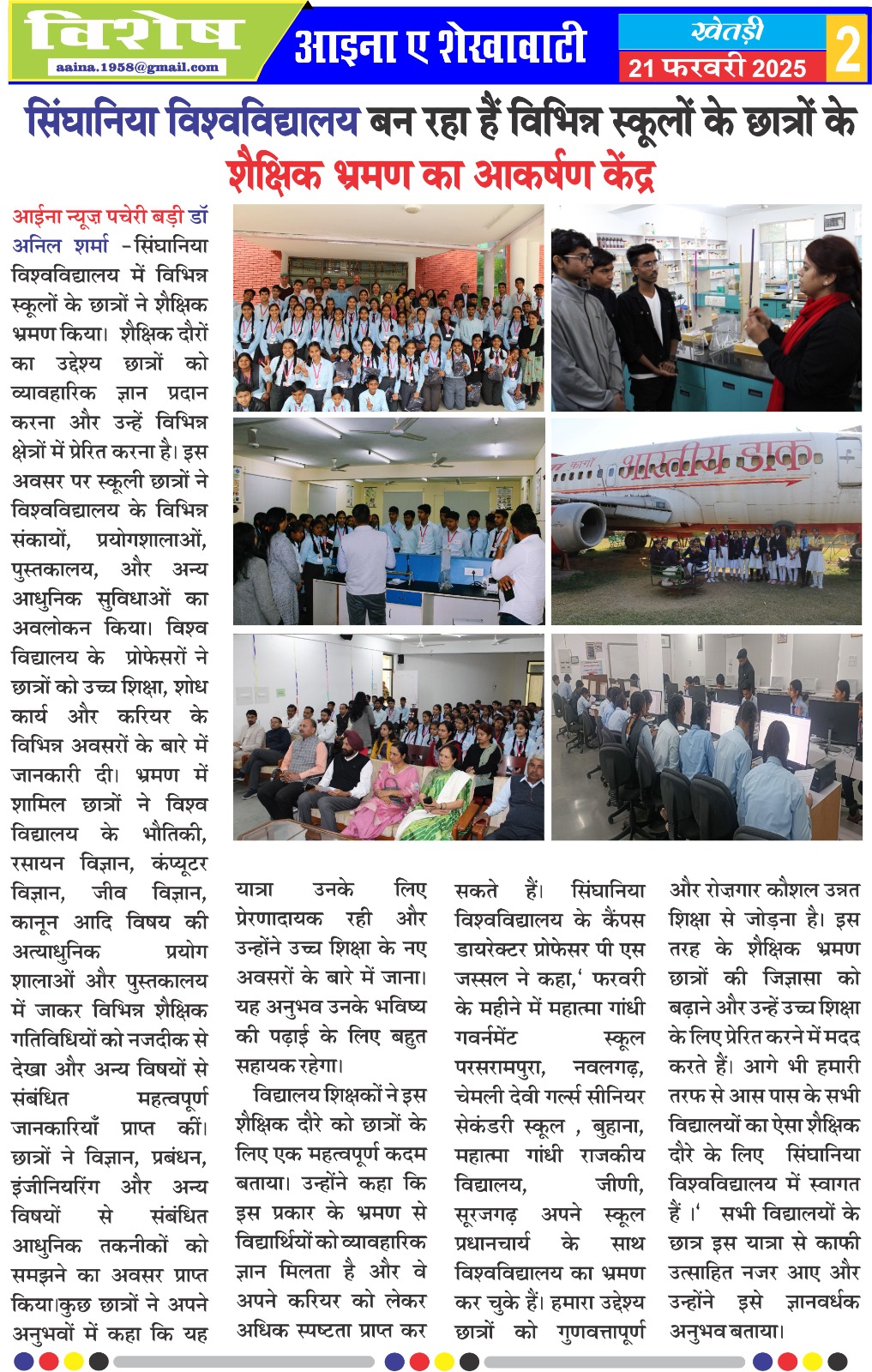 सिंघानिया विश्वविद्यालय बन रहा हैं विभिन्न स्कूलों के छात्रों के शैक्षिक भ्रमण का आकर्षण केंद्र