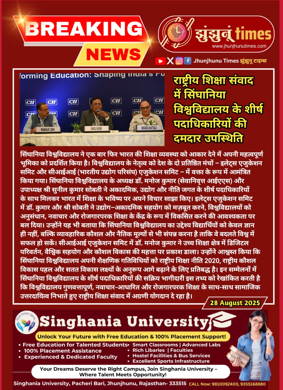 सिंघानिया विश्वविद्यालय के नेताओं ने राष्ट्रीय शिक्षा संवाद में अपनी प्रभावशाली उपस्थिति दर्ज कराई