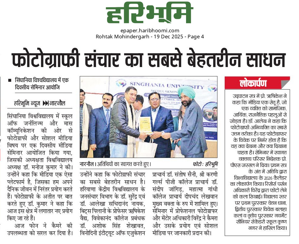 Singhania University organized One-Day Seminar on Photography and Social Media December 19, 2025 Anju Gupta 0