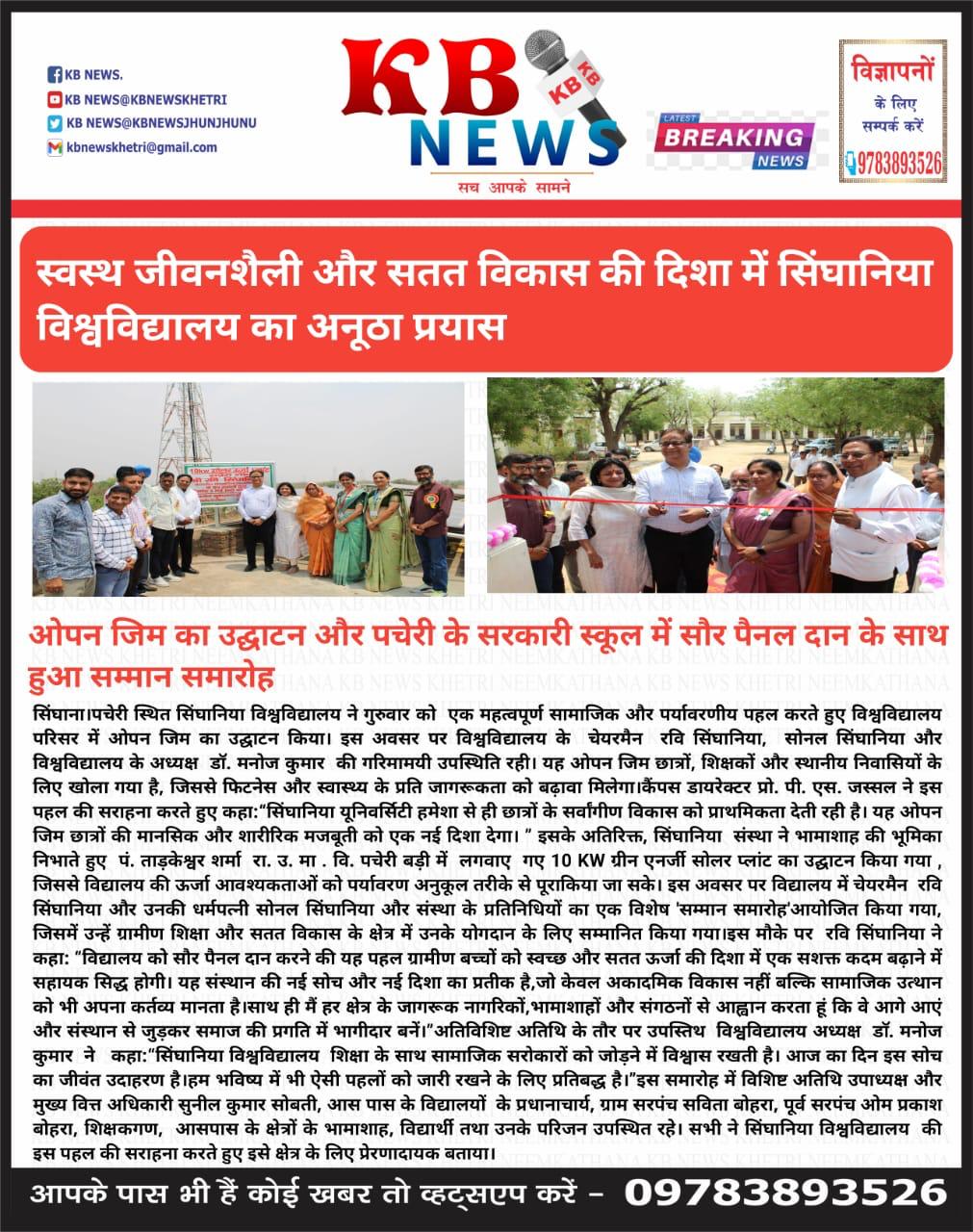 सिंघानिया यूनिवर्सिटी ने स्थिरता और स्वस्थ जीवनशैली की दिशा में एक की पहल