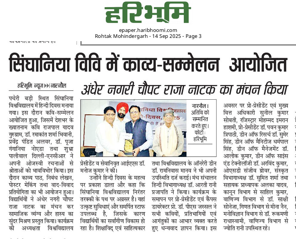 सिंघानिया विश्वविद्यालय में हिंदी दिवस का जश्न: कविता, नाटक और नवाचार के माध्यम से
