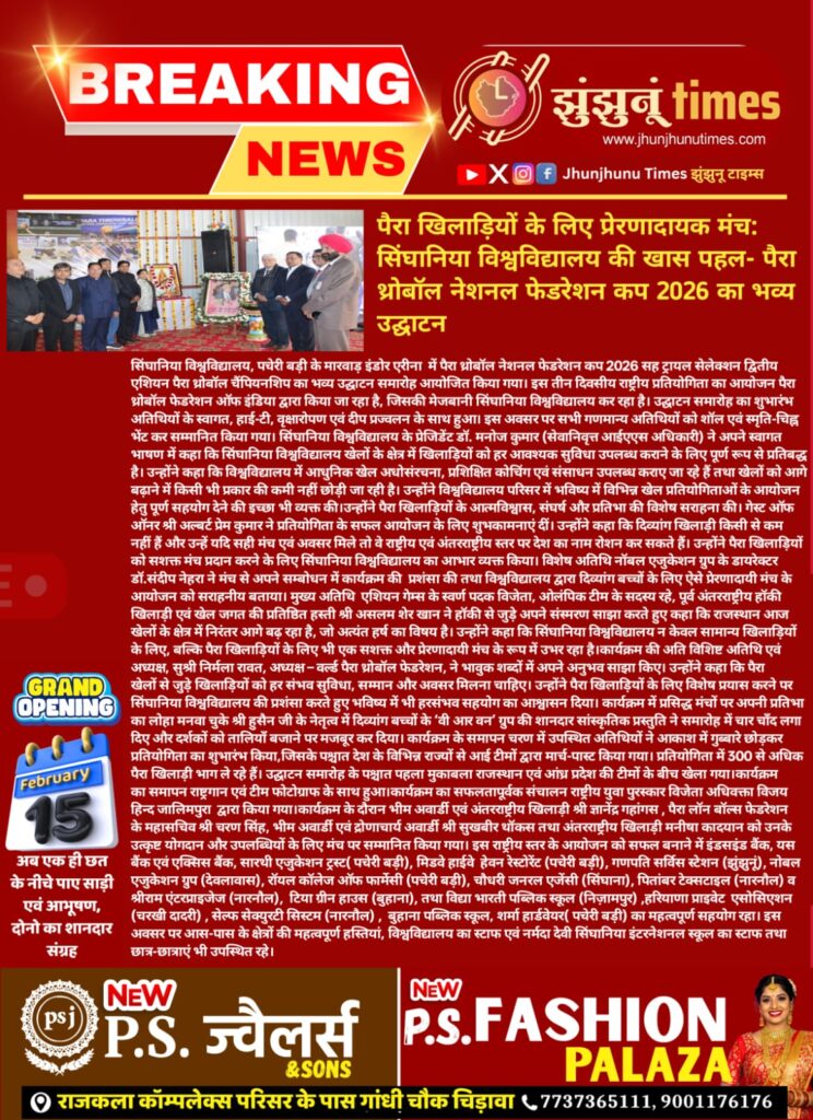 Empowering Para Athletes: Grand opening of Para Throwball National Federation Cup 2026 at Singhania University April 2, 2026 Paresh 0