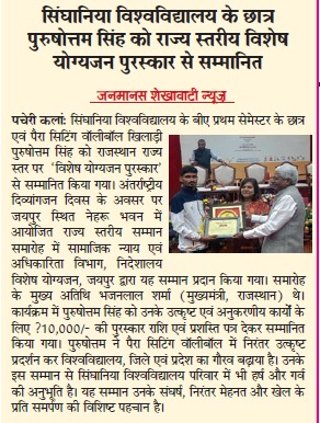 Pride Moment for Singhania University as its Student Purushottam Singh received State-Level Specially-Abled Award December 5, 2025 Anju Gupta 0