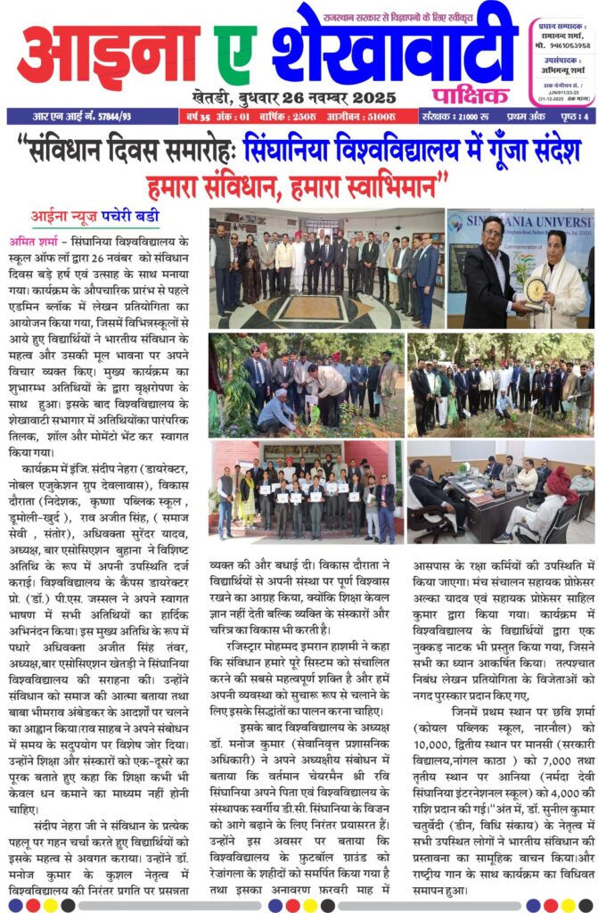 Singhania University celebrated Constitution Day with the Spirit of ‘Our Constitution, Our Pride’ November 26, 2025 Anju Gupta 0