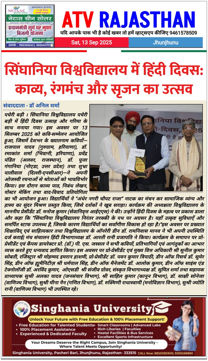 सिंघानिया विश्वविद्यालय में हिंदी दिवस का उत्सव: कविता, नाटक और रचनात्मक अभिव्यक्ति