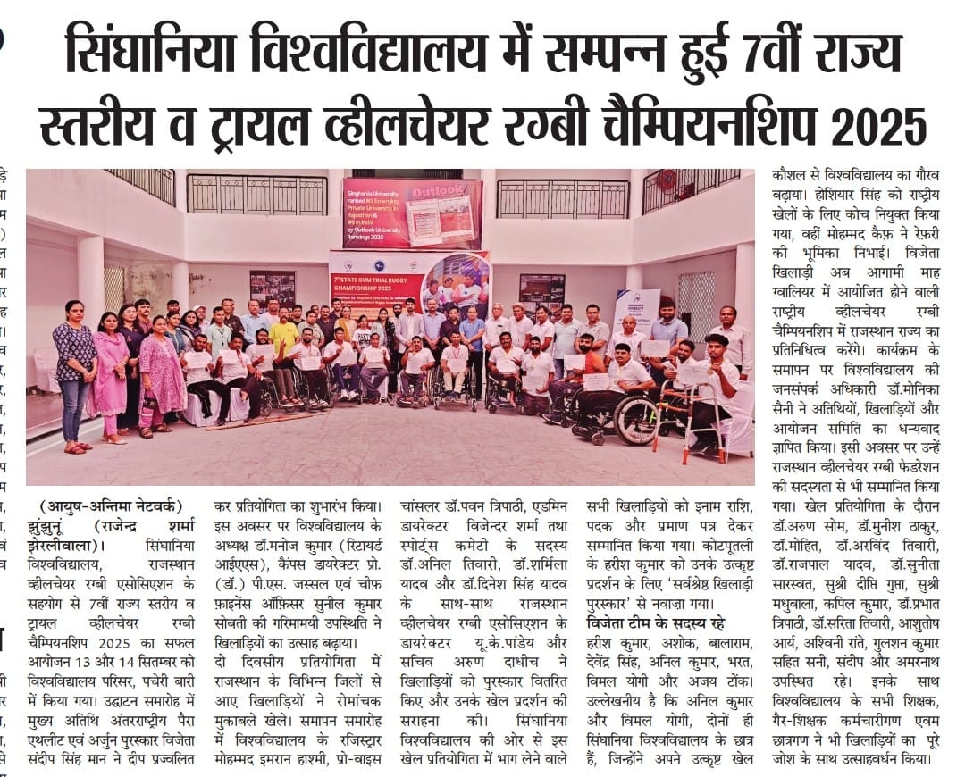 The 7th State-cum-Trial Wheelchair Rugby Championship 2025 held with Great Enthusiasm at Singhania University September 16, 2025 Satyam 0 7वाँ स्टेट-कम-ट्रायल व्हीलचेयर रग्बी चैंपियनशिप 2025 सिंघानिया विश्वविद्यालय में बड़ी उत्सुकता के साथ आयोजित