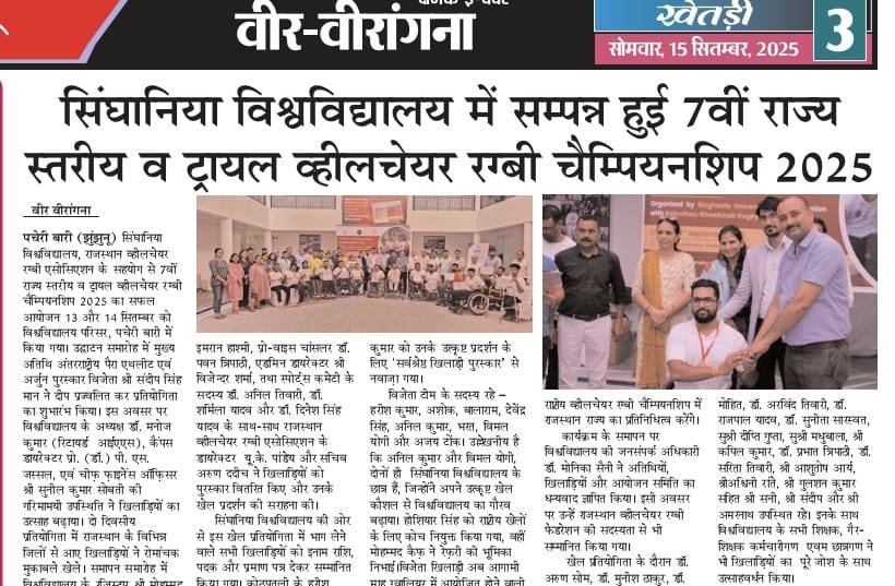 सिंघानिया विश्वविद्यालय में 7वाँ स्टेट-कम-ट्रायल व्हीलचेयर रग्बी चैंपियनशिप 2025 आयोजित
