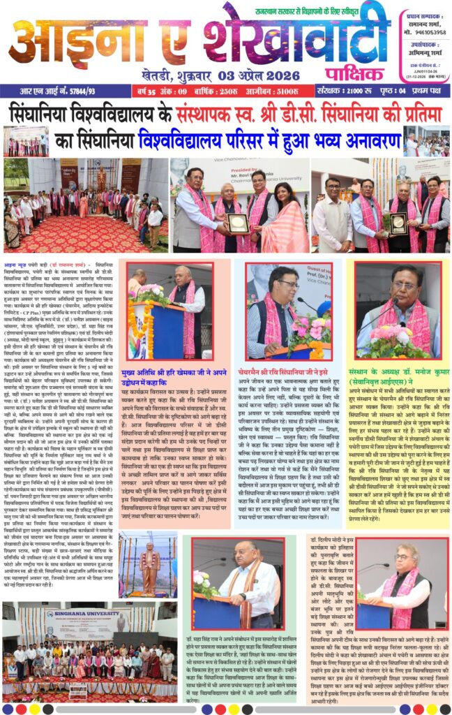 • The statue unveiling ceremony of Late Shri D. C. Singhania, founder of Singhania University, is scheduled for today at campus