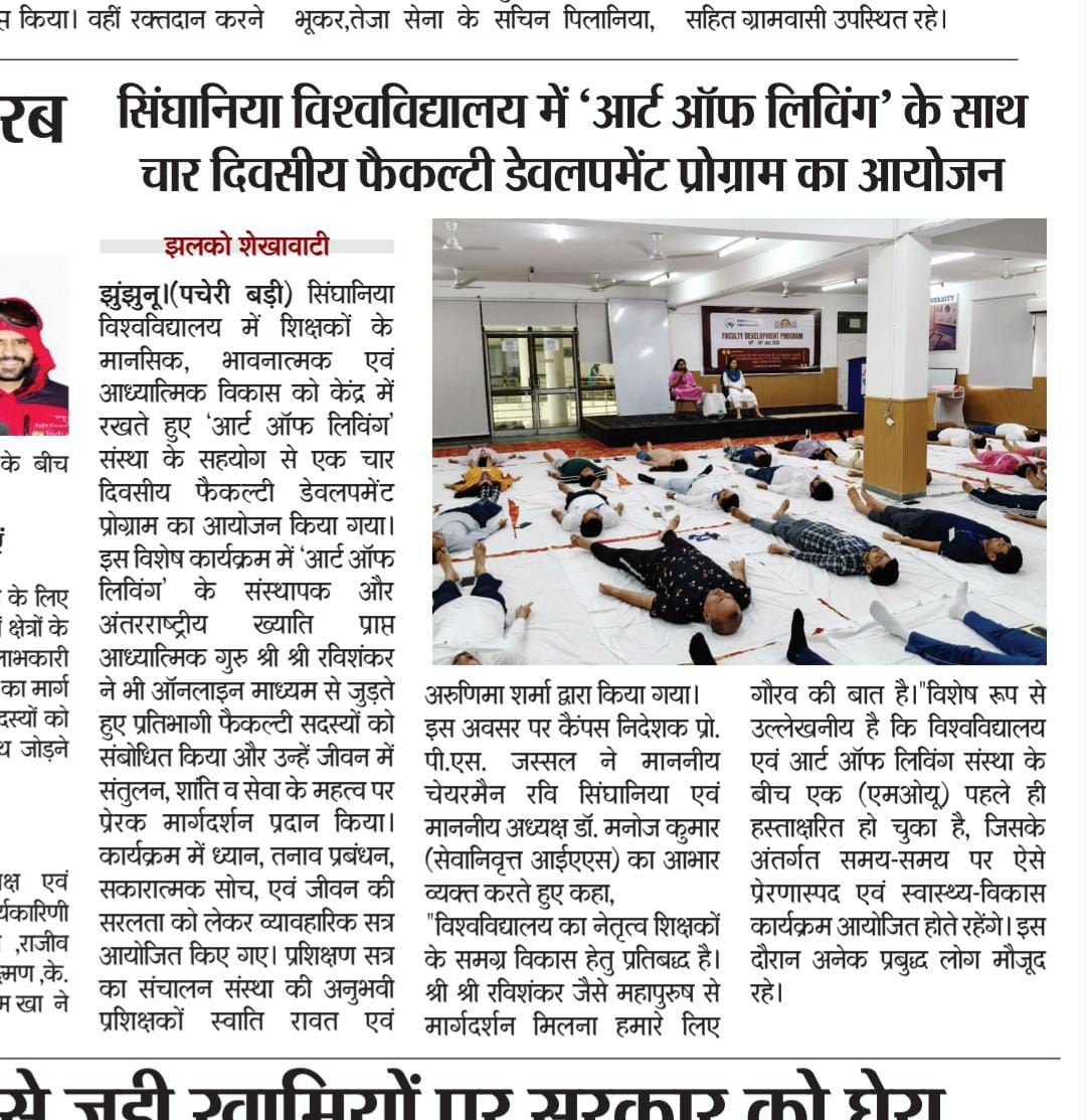 विश्वविद्यालय ने द आर्ट ऑफ लिविंग के सहयोग से फैकल्टी एवं स्टाफ के लिए 4 दिवसीय एफडीपी का आयोजन किया