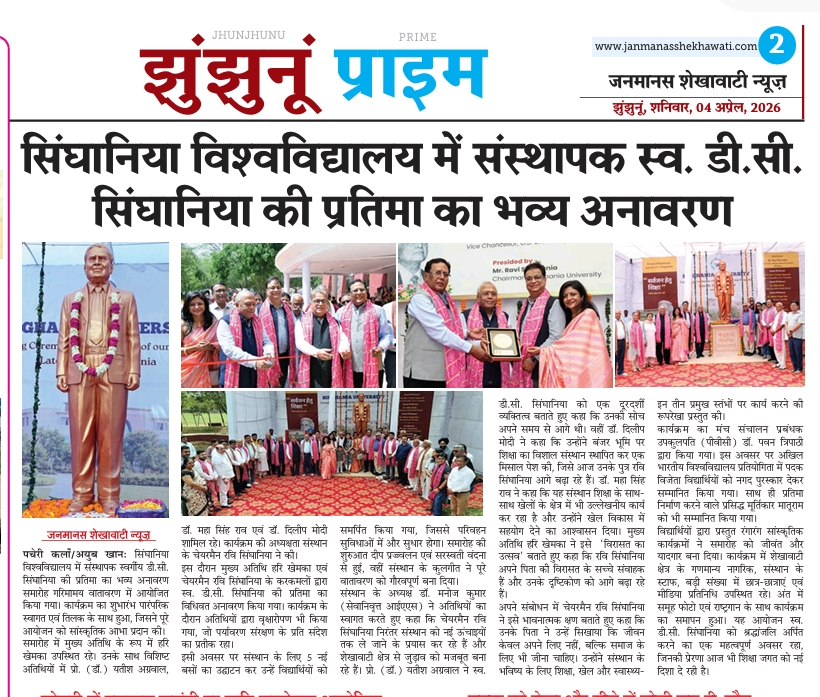 • The statue unveiling ceremony of Late Shri D. C. Singhania, founder of Singhania University, is scheduled for today at campus