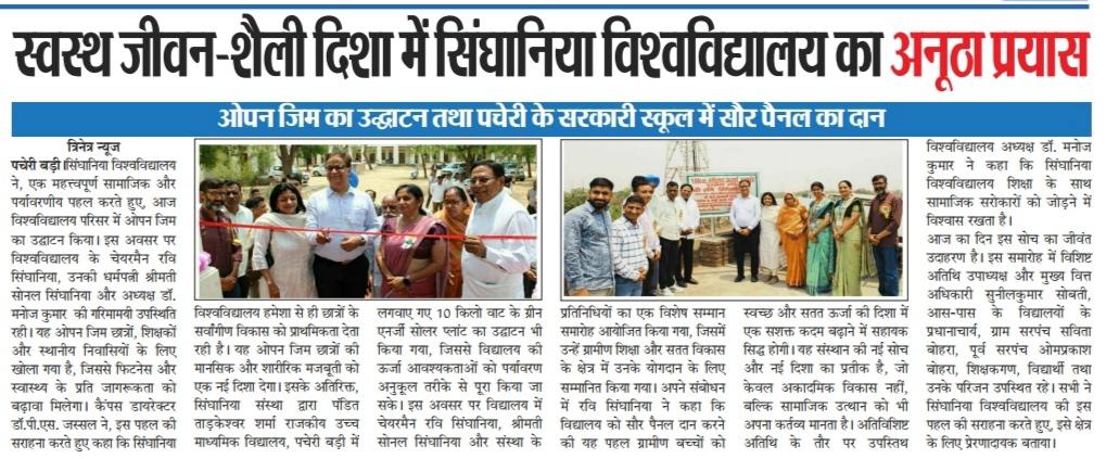 स्थायी जीवनशैली और विकास की ओर – सिंघानिया यूनिवर्सिटी की सराहनीय पहल