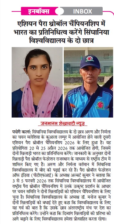 • Monika and Anjali, students of Singhania University brought pride to the institution with their remarkable National-level achievements at the All-India Inter-University Women’s Boxing Championship and the AIU Wrestling Championship