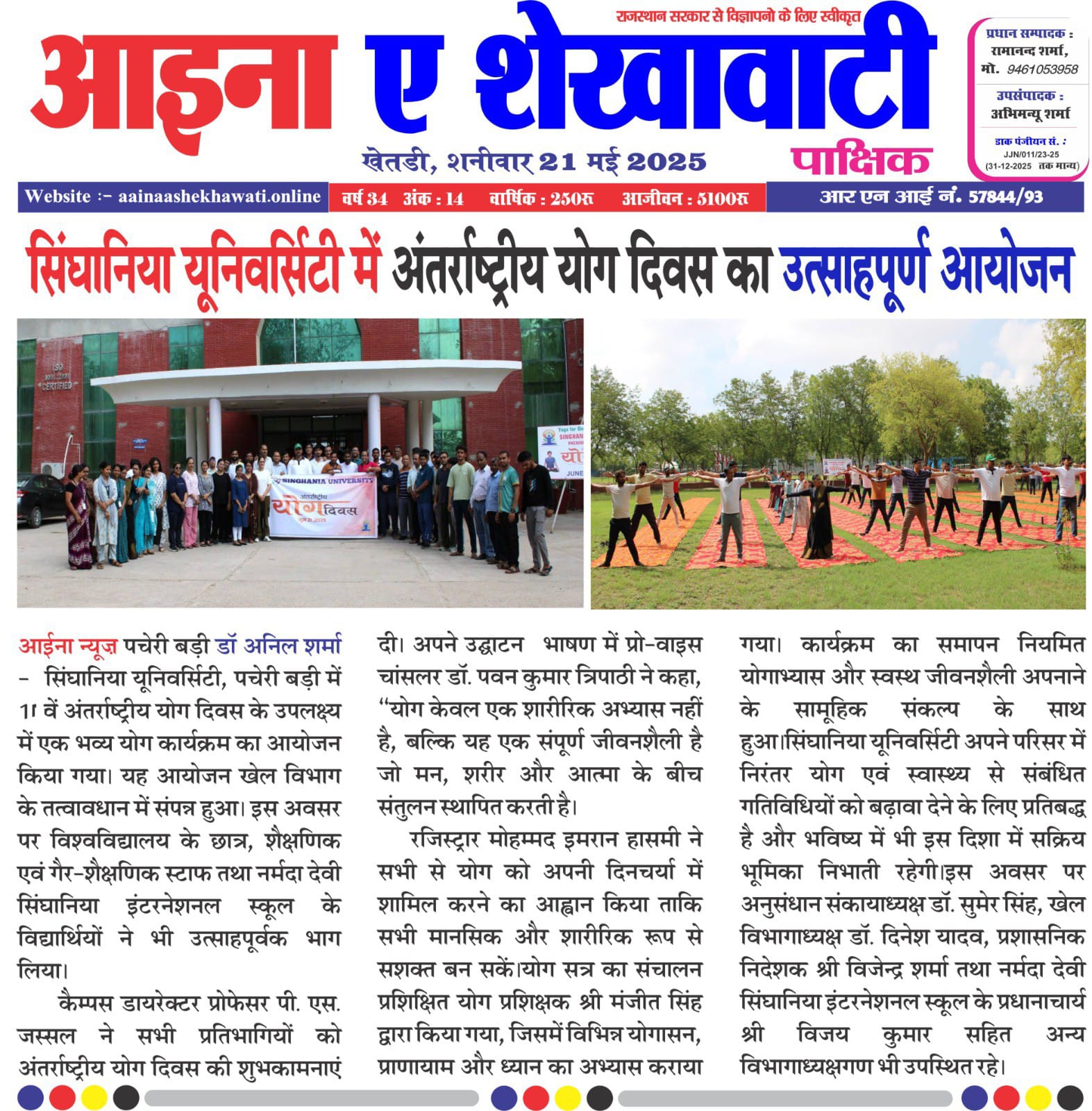 सिंघानिया विश्वविद्यालय में अंतर्राष्ट्रीय योग दिवस की जीवंत प्रस्तुति