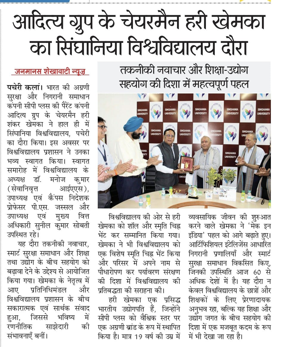 सिंघानिया यूनिवर्सिटी में श्री हरी खेमका का स्वागत – उद्योग और शिक्षा के संगम की नई शुरुआत